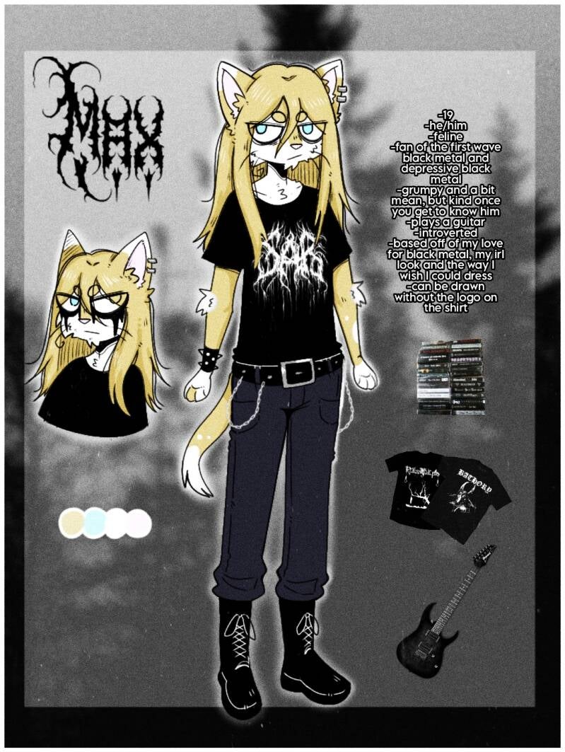 Max (My Fursona, based off of my love for Black Metal music and my look) Ref sheet 1 - OLD